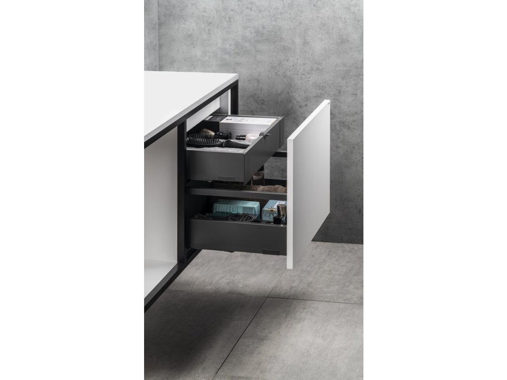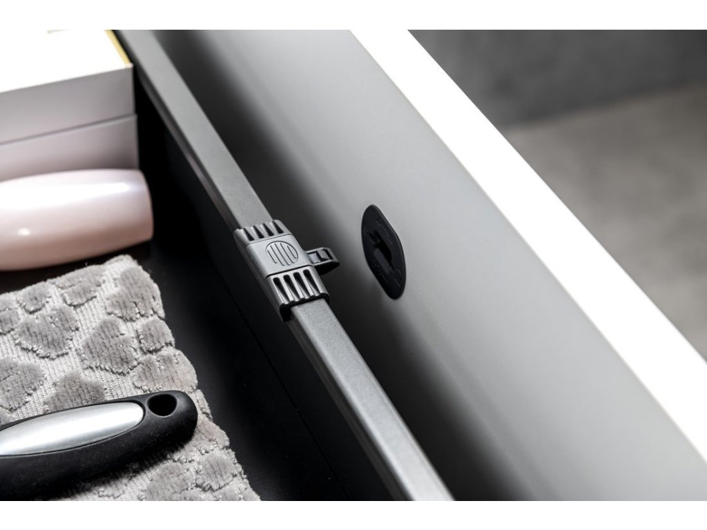 Nábytek je vybaven pojezdy zásuvek s pomalým dojezdem a systémem automatického dovření zásuvek. Již žádné hlučné dovírání.