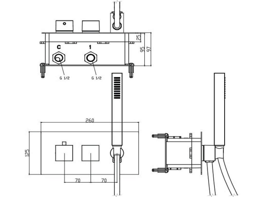 Sapho LATUS podomítková sprchová termostatická baterie vč. sprchy, 2/3 výstupy, chrom 1102-45