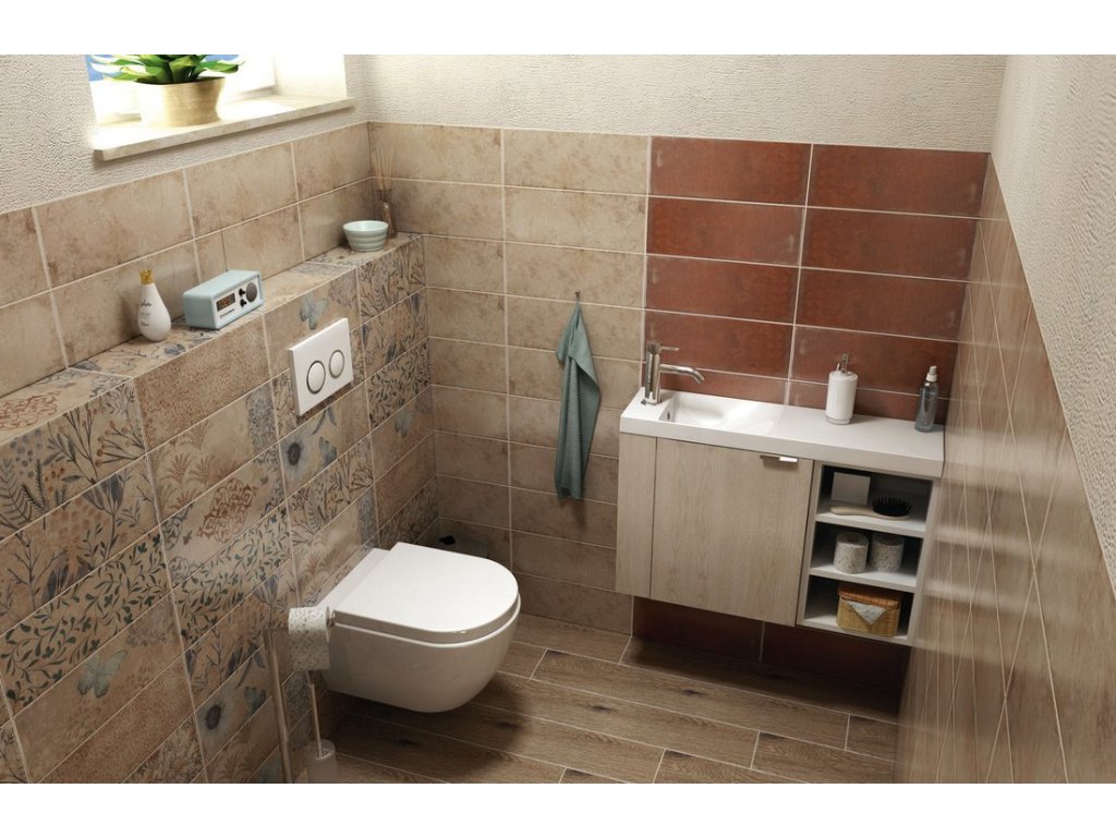 Malé rozměry koupelnového nábytku LATUS umožňují instalaci především do stísněných prostor, obzvláště na toalety. Skříňka se přímo nabízí k uskladnění čistících a hygienických prostředků nebo toaletního papíru. Umyvadlo z litého mramoru nebo keramiky vytváří se skříňkou kompaktní celek. V nabídce je jak několik tvarů umyvadel, tak barevných dekorů skříněk pro větší kompatibilitu.