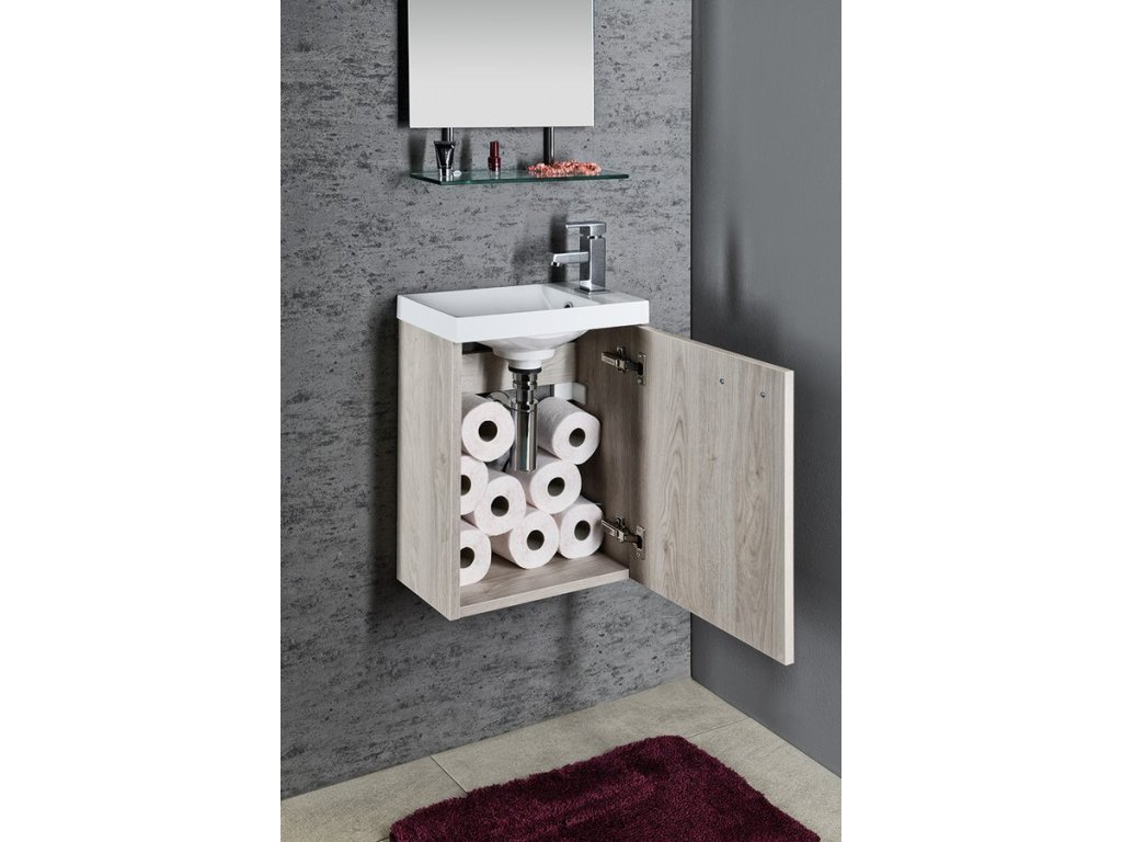 Malé rozměry koupelnového nábytku LATUS umožňují instalaci především do stísněných prostor, obzvláště na toalety. Skříňka se přímo nabízí k uskladnění čistících a hygienických prostředků nebo toaletního papíru. Umyvadlo z litého mramoru nebo keramiky vytváří se skříňkou kompaktní celek. V nabídce je jak několik tvarů umyvadel, tak barevných dekorů skříněk pro větší kompatibilitu.