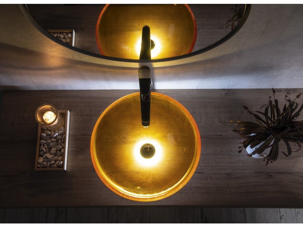 Sapho MARAGUA skleněné gravírované umyvadlo na desku Ø 39, 5cm, zlatá TY214Z