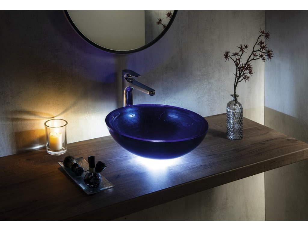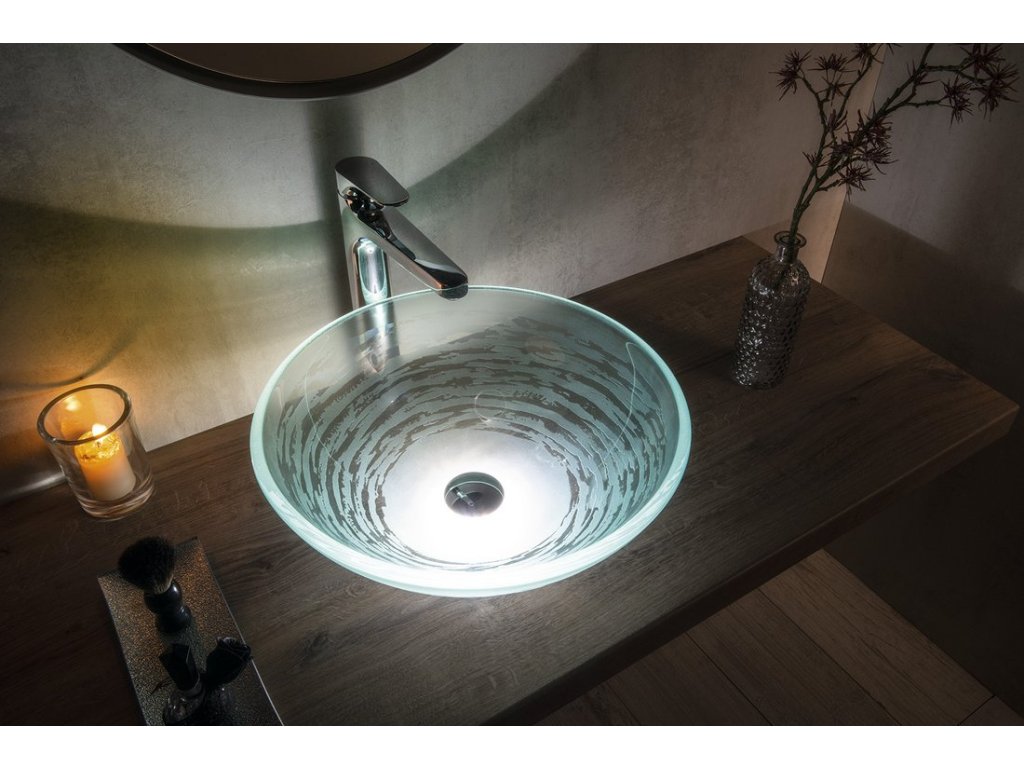 Soubory ke stažení:Krása skleněných umyvadel naplno vynikne až průchodem světla přes jejich stěnu.