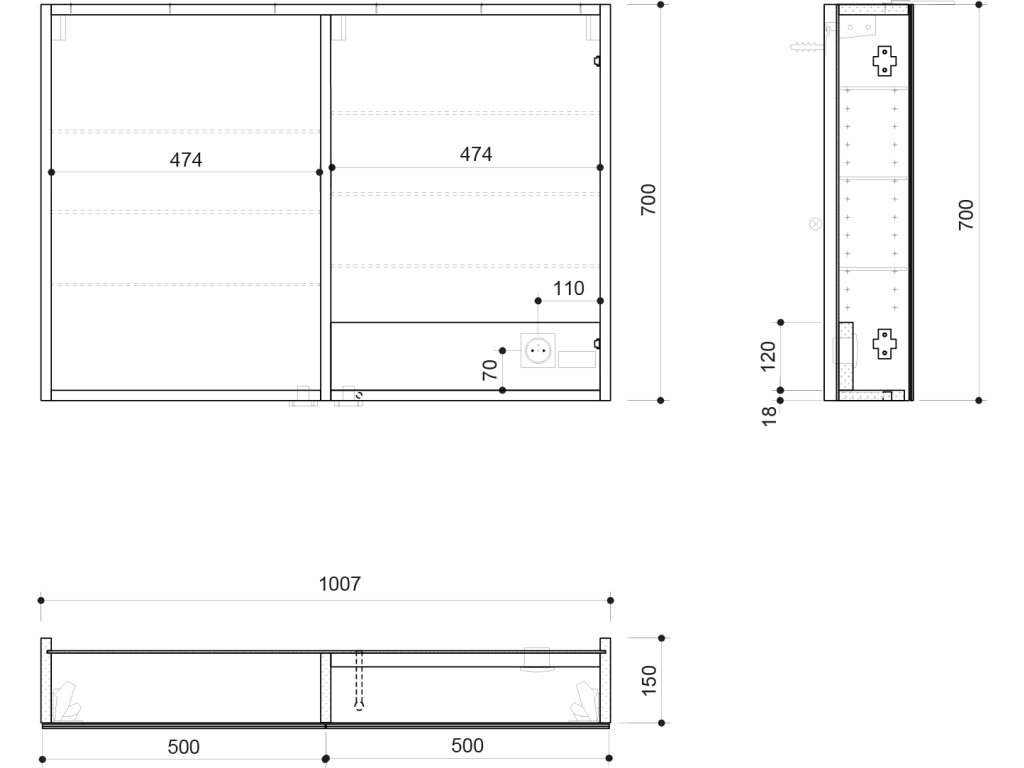 Speciální možnosti: | Zpomalovací panty, Osvětlení, Elektrická zásuvka, Oboustranná zrcadlová dvířka |