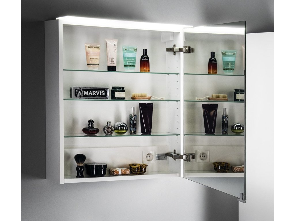 Galerky LINEX – skleněné nastavitelné police poskytují dostatek místa pro uskladnění kosmetiky, hygienických potřeb i holicího strojku. Navíc i při otevření galerky můžete používat zrcadlo díky oboustranným zrcadlovým dvířkům. Dovírání dvířek s dotahem zajišťuje značkové kování GRASS. Výkonné LED osvětlení v liště po celé šířce galerky zajistí dostatek osvětlení a ovládá se pomocí externího vypínače. Pro větší komfort ovládání osvětlení lze dokoupit bezdotykovou senzorovou sadu. Samozřejmostí je elektrická zásuvka a designová úchytka dvířek. K vybraným rozměrům nabízíme také závěsnou skleněnou poličku.