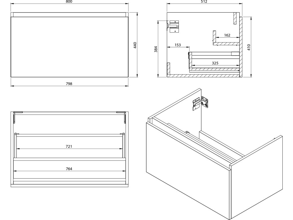 Uvnitř skříňky je nad zásuvkou praktická police na drobnosti každodenní potřeby. Pod hranu umyvadla lze instalovat tlumené LED osvětlení, které pro jeho nízkou spotřebu (1W) není nutné vypínat.