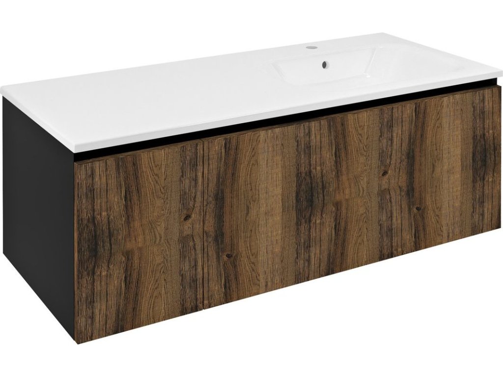 Sapho LOREA skříňka s umyvadlem 121x46x51, 5cm (30+90cm), pravá, dub collingwood/černá mat LE090-1935-R-03