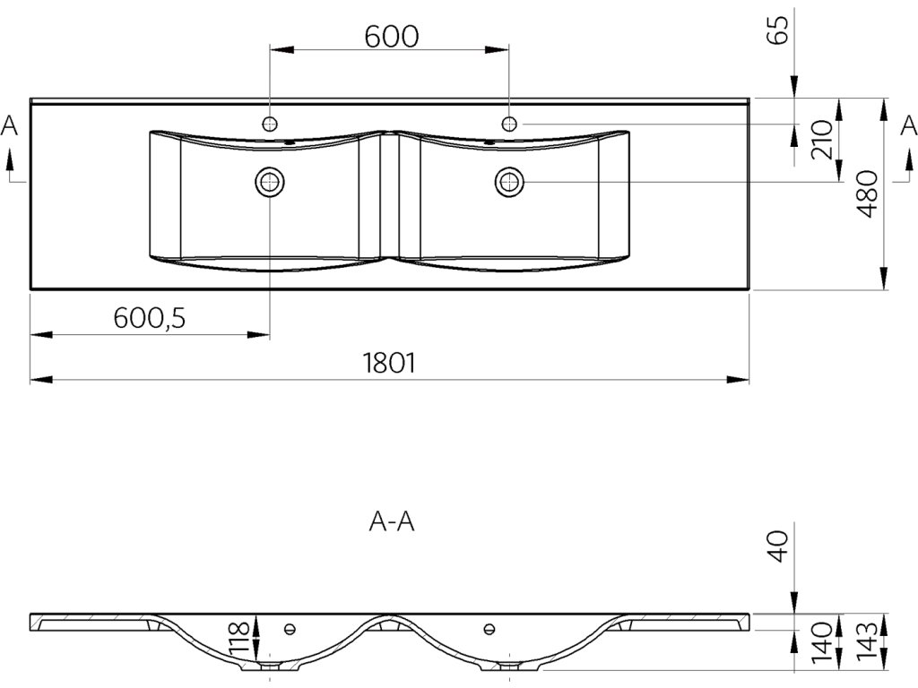 Sapho LUCIOLA dvojumyvadlo, litý mramor, 180x48cm, bílá 50184