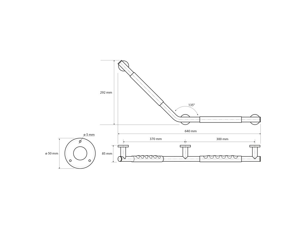 Sapho Madlo lomené 135° s protiskluzem LEVÉ, nerez lesk XR507