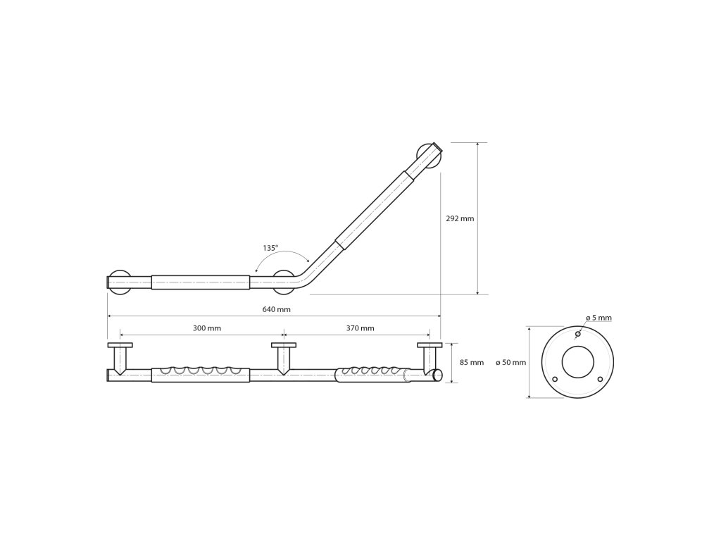 Sapho Madlo lomené 135° s protiskluzem PRAVÉ, nerez lesk XR508