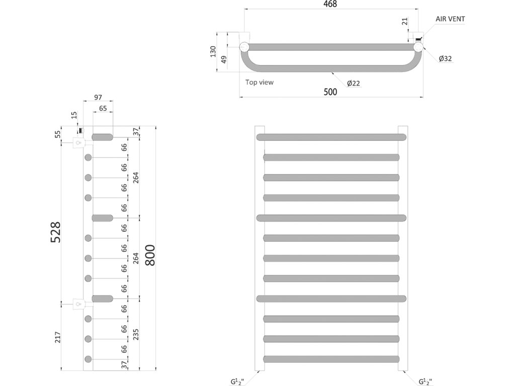Soubory ke stažení:Klasické těleso vyrobené z pochromovaných ocelových trubek, doplněné praktickými madly na sušení ručníků.