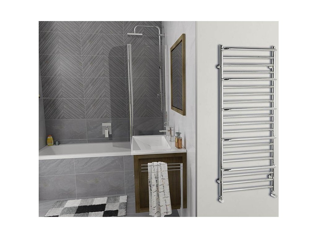 Soubory ke stažení:Klasické těleso vyrobené z pochromovaných ocelových trubek, doplněné praktickými madly na sušení ručníků.