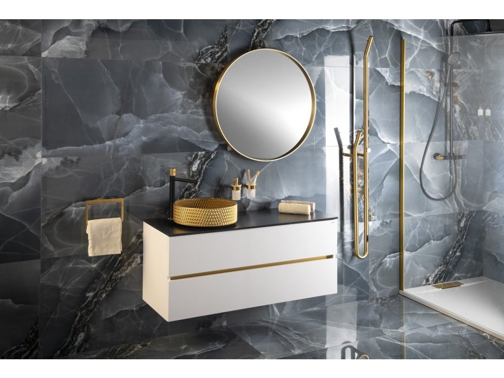 Sapho MARAGUA skleněné gravírované umyvadlo na desku Ø 39, 5cm, zlatá TY214Z