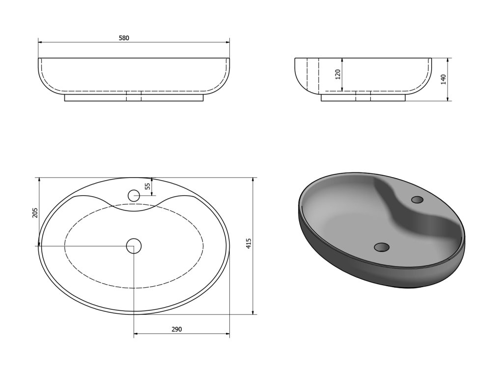 Sapho MARIANA keramické umyvadlo na desku, 58x41, 5cm, bílá AR483
