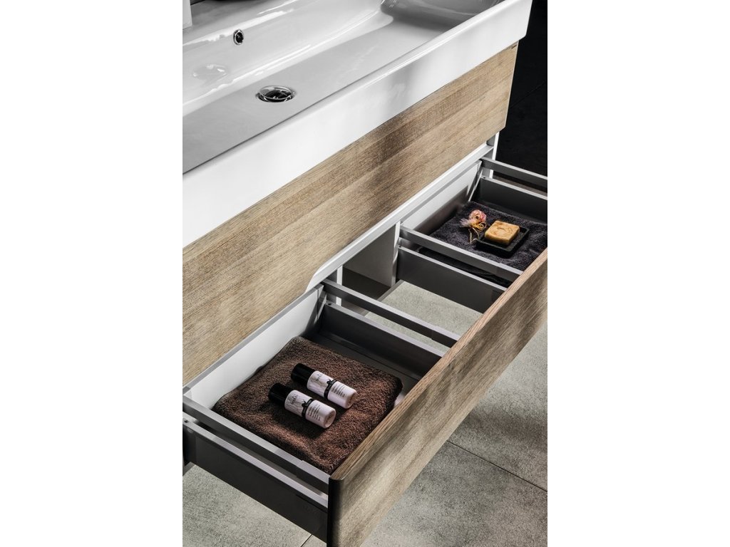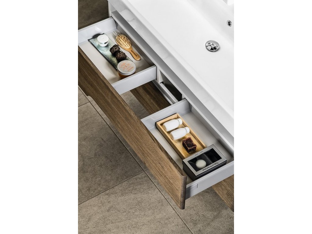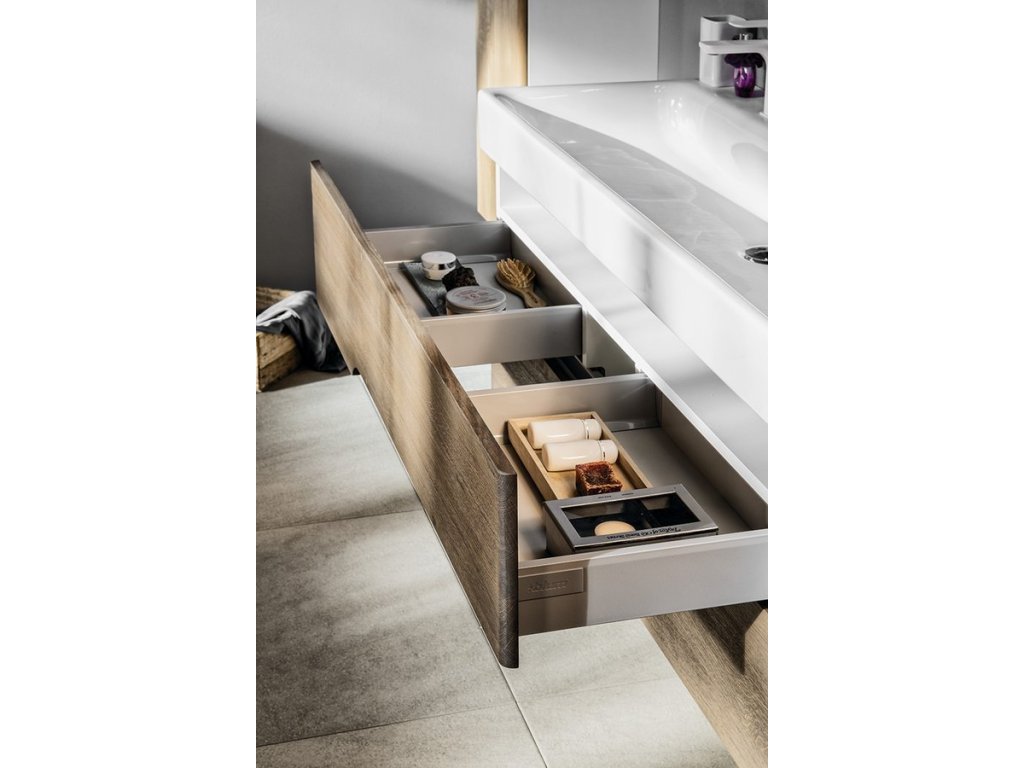 Soubory ke stažení:Série MEDIENA je kombinací bílé matné barvy a zásuvek z masivního dřeva, které svým zaoblením kopírují tvar keramických umyvadel SAND od italského výrobce GSI. Zásuvky s netradičním tvarem výřezu pro otvírání jsou vybaveny výsuvy BLUM s funkcí tlumení BLUMOTION s doživotní zárukou. Skříňky nabízíme buď celé v bílém matném provedení nebo v kombinaci korpus matná bílá a čela zásuvek ve 2 dekorech dubového dřeva (voskový olej dub natural a dub graphite). Šířky skříněk jsou 60, 80, 100 a 120 cm. V nabídce jsou též 2 typy doplňkových policových skříněk. Skříňku s prádelním košem získáte jednoduchým vyjmutím spodní police u doplňkové skříňky šíře 35 cm a instalací látkového prádelního koše na suchý zip.