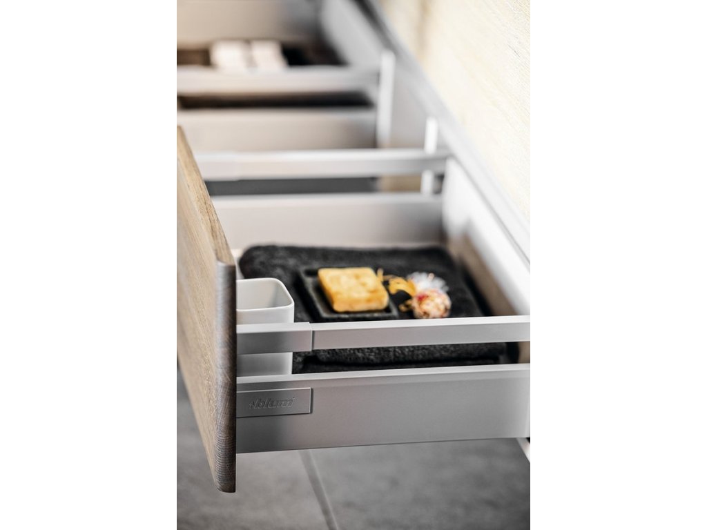 Při výrobě nábytku používáme systém výsuvu zásuvky BLUM TANDEMBOX antaro s integrovanou funkcí tlumení BLUMOTION. Všechny zásuvky vybavené tímto systémem otevřete nanejvýš lehce a snadno jedním pohybem ruky. TANDEMBOX antaro zajistí vysokou kvalitu pohybu při dynamické nosnosti 30 a 65 kg. Technologie integrovaného tlumení BLUMOTION garantuje lehký chod, zavírá nábytek měkce a tiše a to po celou dobu životnosti nábytku. Přitom nehraje žádnou roli, jak důrazně zásuvky zavřete, nebo jak moc jsou plné a tudíž zatížené.