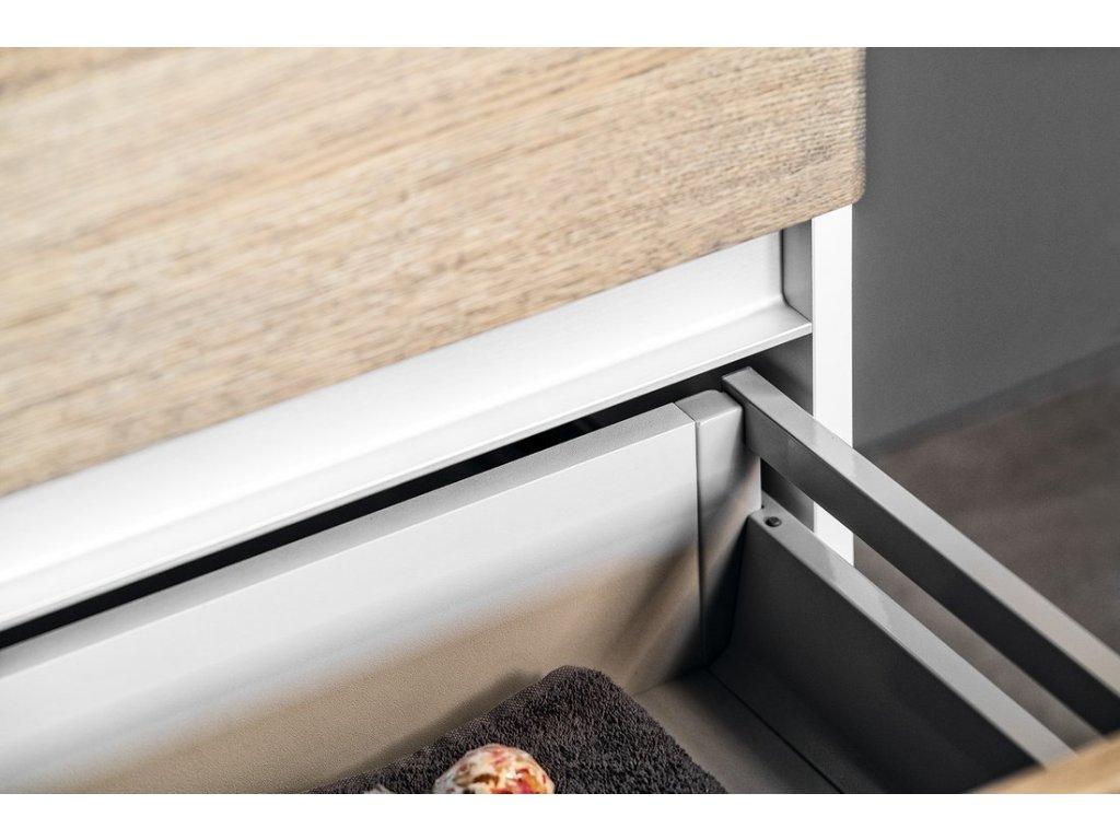 Nábytek je vybaven pojezdy zásuvek s pomalým dojezdem a systémem automatického dovření zásuvek. Již žádné hlučné dovírání.
