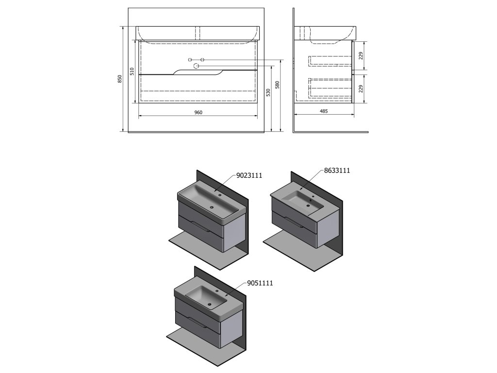 Sapho MEDIENA umyvadlová skříňka 96x51x48, 5cm, bílá mat/bílá mat MD100