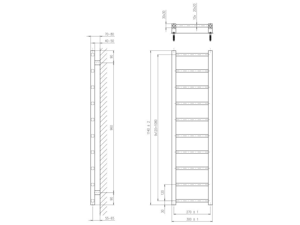 Sapho METRO LIGHT otopné těleso 300x1140 mm, chrom IR444R
