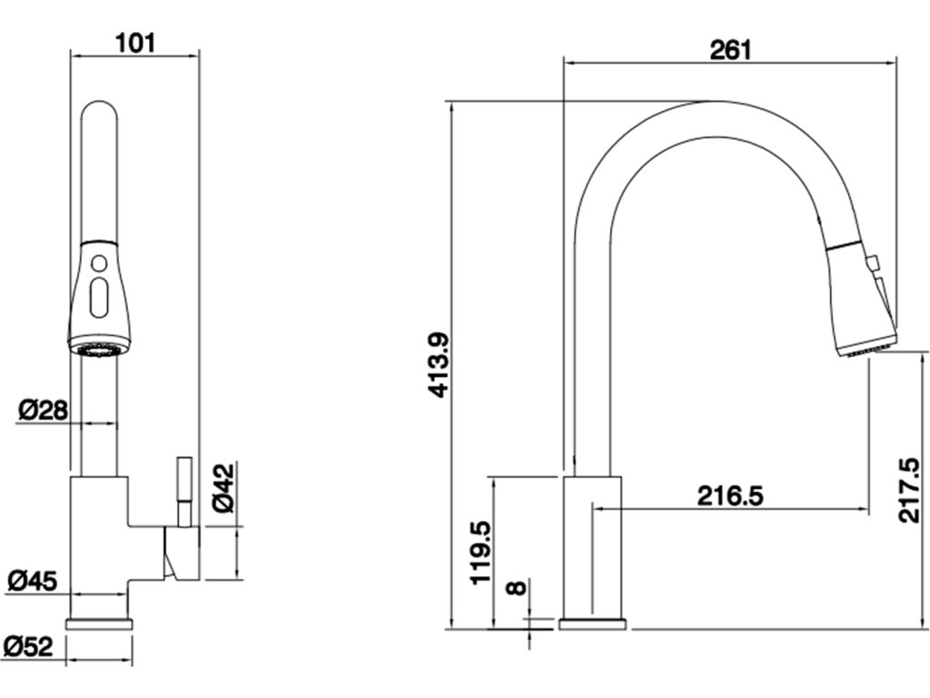 Ostatní: | Otočné ramínko, Výsuvná hubice/sprcha |