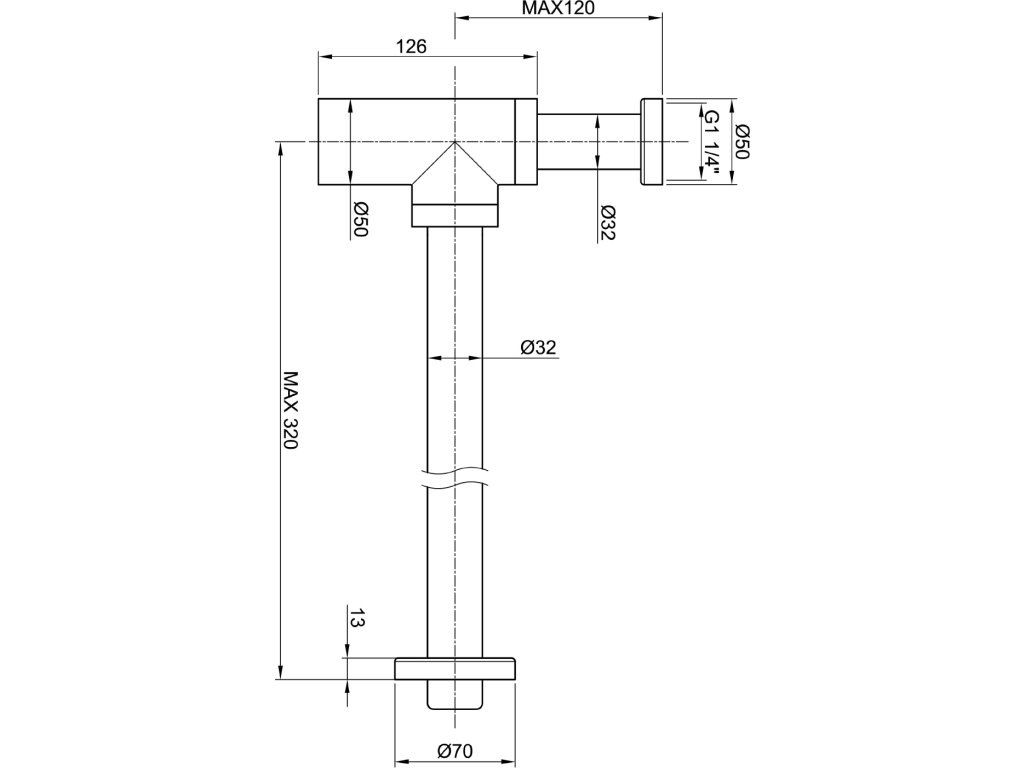 Sapho MINIMAL umyvadlový sifon 5/4", odpad 32 mm, nerez mat MI036