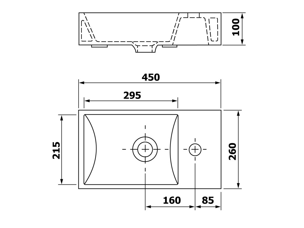 Sapho MINOS keramické umývátko, 45x26cm, baterie vpravo, bílá 4057