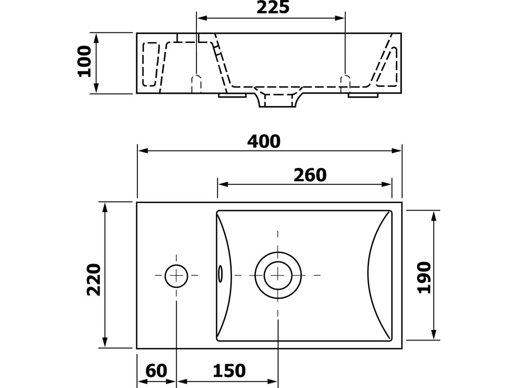 Sapho MINOS keramické umývátko 40x22cm, baterie vlevo, bílá 4759