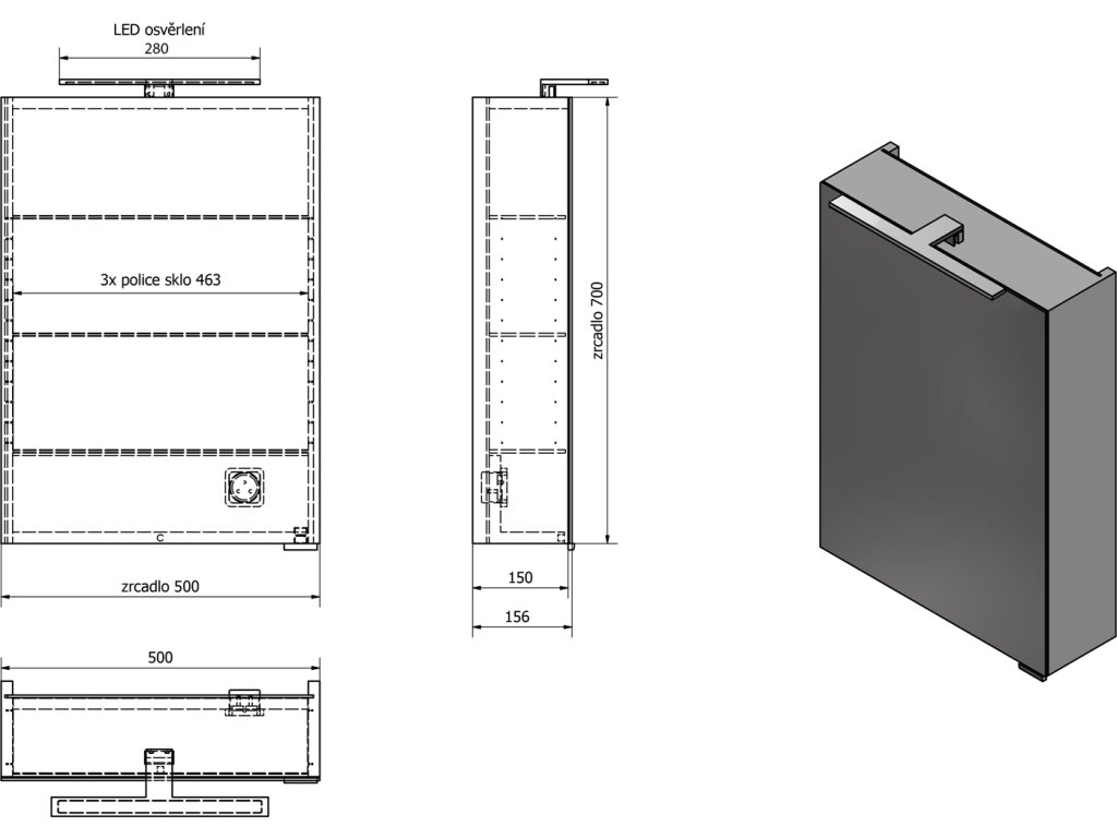 Speciální možnosti: | Zpomalovací panty, Osvětlení, Elektrická zásuvka, Oboustranná zrcadlová dvířka |