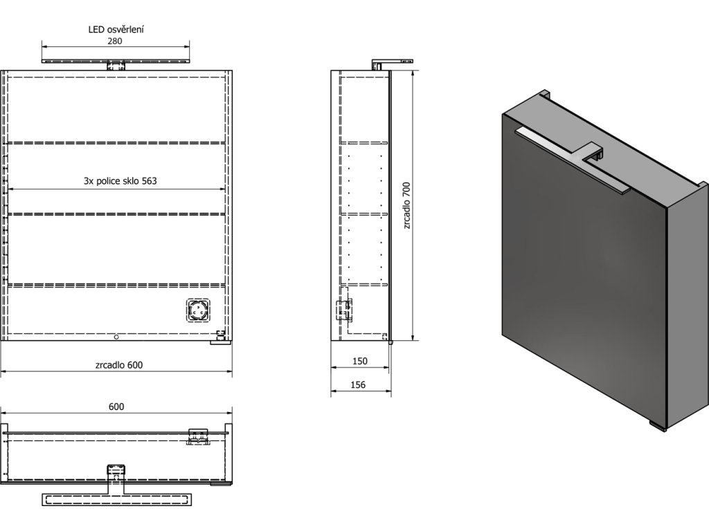 Speciální možnosti: | Zpomalovací panty, Osvětlení, Elektrická zásuvka, Oboustranná zrcadlová dvířka |