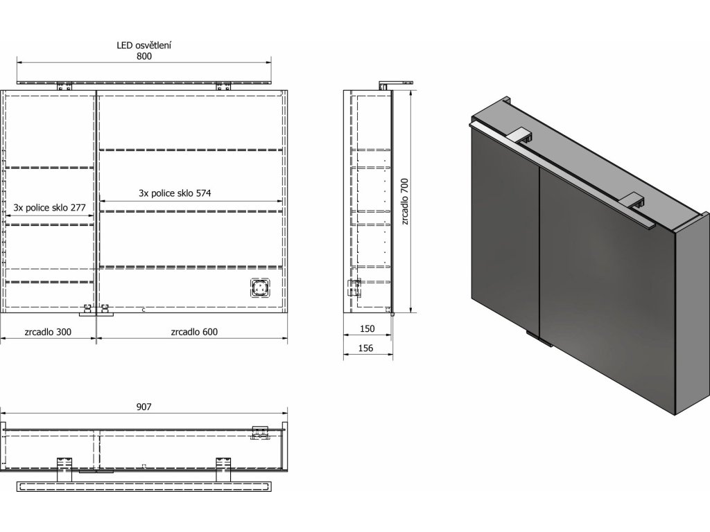 Speciální možnosti: | Zpomalovací panty, Osvětlení, Elektrická zásuvka, Oboustranná zrcadlová dvířka |