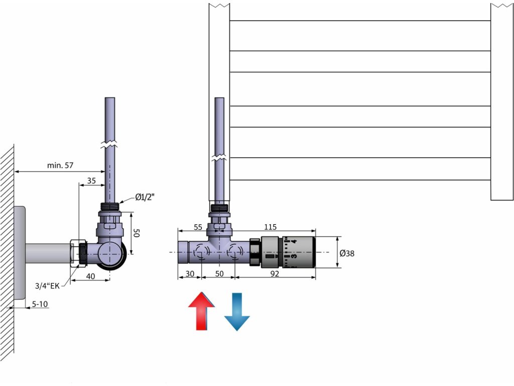 Kombinované připojení umožňuje ohřívat těleso jak centrálním systémem vytápění, tak využít pro samostatný ohřev elektrickou topnou tyč mimo topnou sezonu. Topnou tyč doporučujeme se stejným nebo podobným výkonem dle specifikace daného topného tělesa.