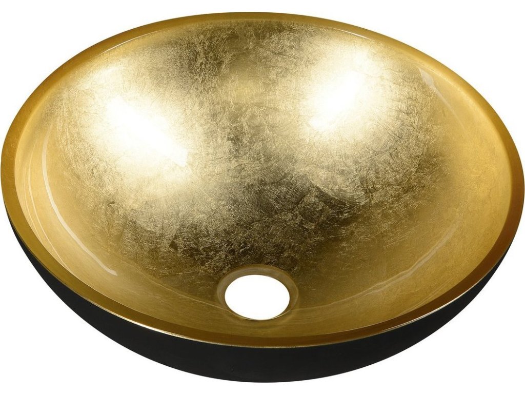 Sapho MURANO BLACK-GOLD skleněné umyvadlo na desku, průměr 40cm, černá/zlatá AL5318-77