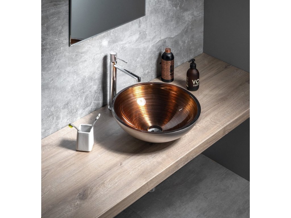 Sapho MURANO WENGE skleněné umyvadlo na desku, průměr 40cm, měděná/stříbrná AL5318-66