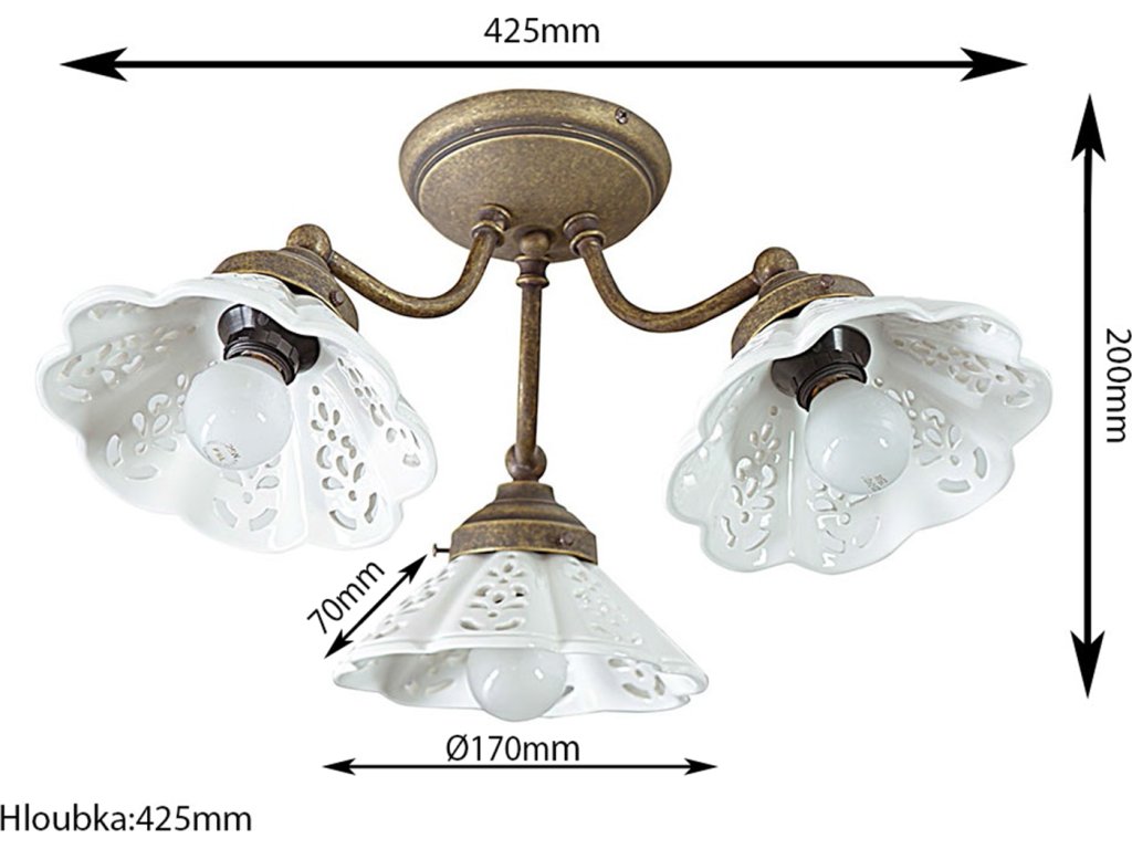 Sapho NAPOLI stropní svítidlo, 3xE14, 40W, 230V, IP21, keramické stínítko, bronz MC613