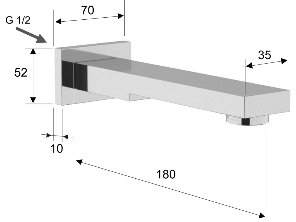 Sapho Nástěnná výtoková hubice, hranatá, 180mm, zlato BO417