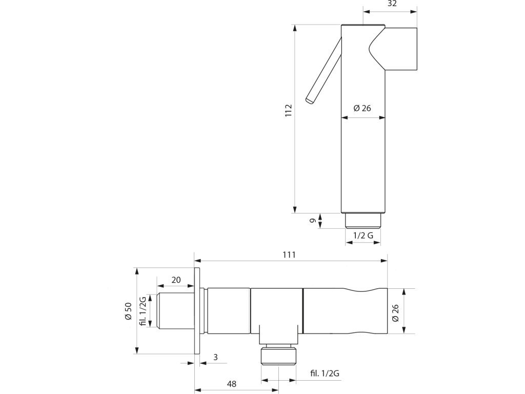 Sapho Nástěnný ventil s ruční bidetovou sprškou a bezpečnostní pojistkou, kulatý, chrom SG107