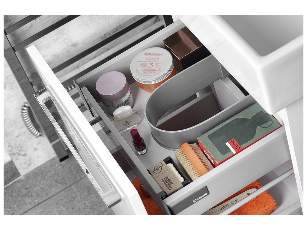Série NATY je ideální pro každodenní využití okořeněné o estetický zážitek. Skříňky jsou vybaveny praktickou vnitřní skrytou zásuvkou a skvěle ladí s tvarově dokonalými keramickými umyvadly PURITY v šířkách 50 a 60 cm. Nábytek je dodáván standardně v bílé barvě se zásuvkou vybavenou výsuvem BLUM s funkcí tlumení BLUMOTION s doživotní zárukou. Bezchybný vzhled skříněk dotváří chromová úchytka.