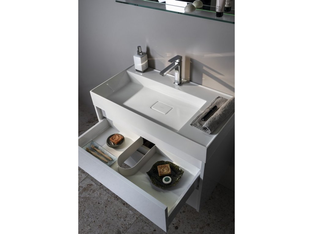 Místo umyvadla lze použít Rockstone desku. V případě zájmu si vyberte barvu dle vzorníku zde a pro nacenění a objednání kontaktujte prodejní oddělení.