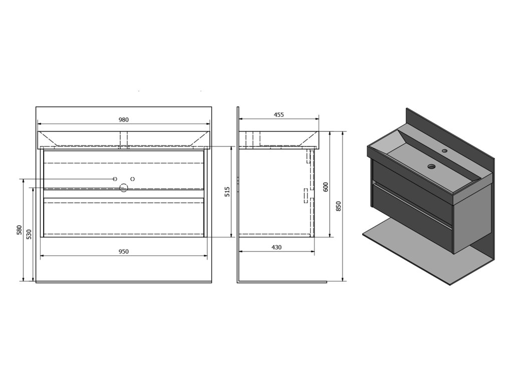 Sapho NIRONA umyvadlová skříňka 95x51, 5x43 cm, bílá NR100-3030