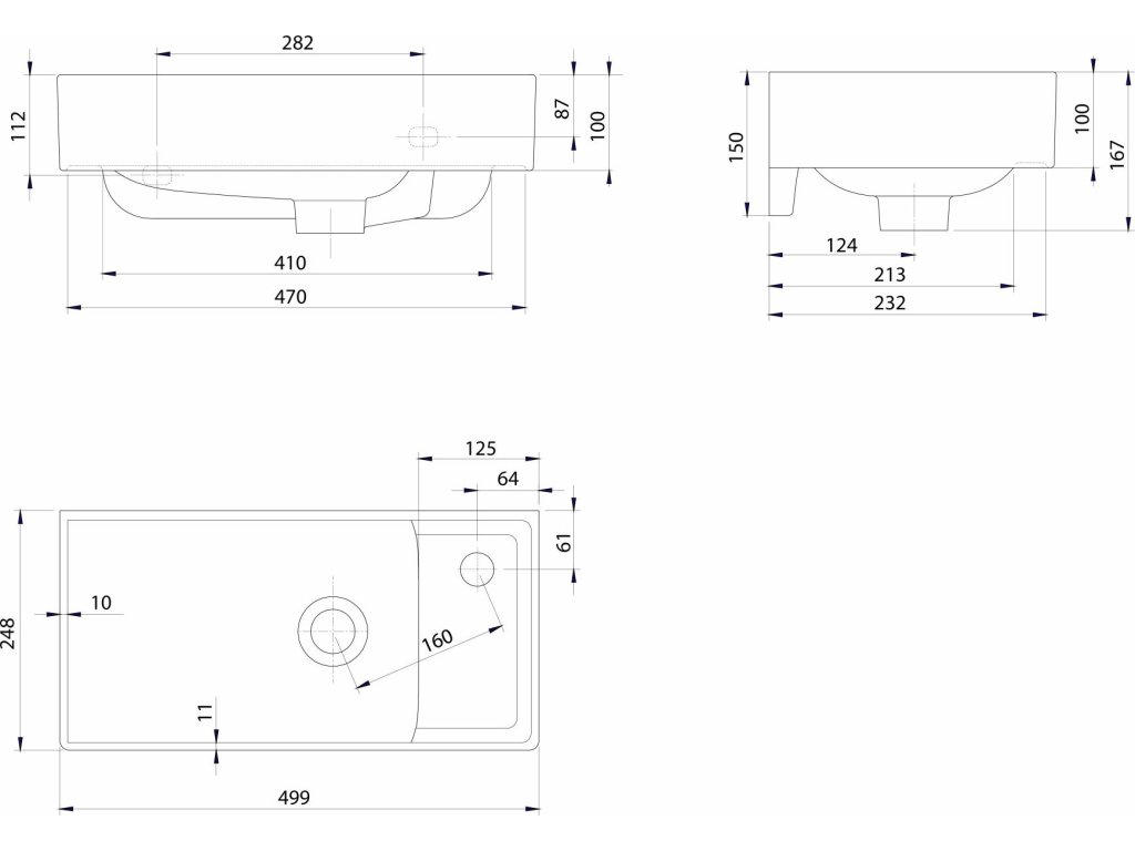 Sapho NUALI keramické umývátko 50x25cm, baterie vpravo, bílá TU0122