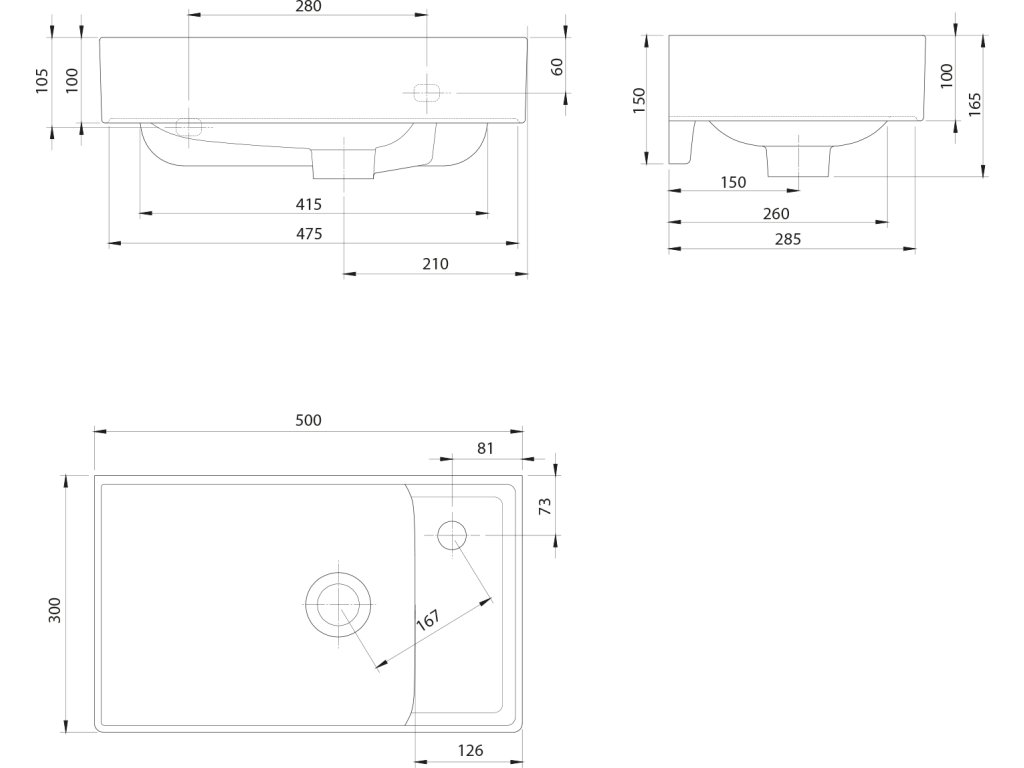 Sapho NUALI keramické umývátko 50x30cm, baterie vpravo, bílá TU0129