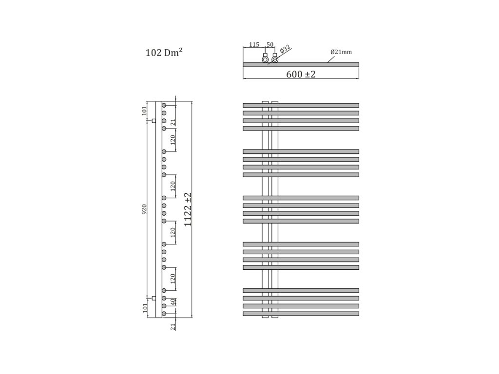 - Topná tyč a připojovací ventily nejsou součástí radiátoru