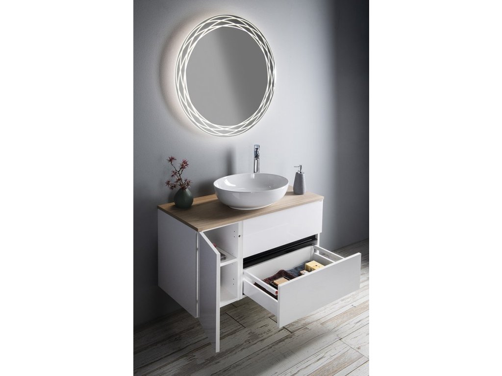 Série ODETTA nabízí umyvadlové skříňky v kombinaci se 3 druhy umyvadel - keramická KARE, z litého mramoru GODIVA a betonová QUADRADO. Série je také navržena pro vybraná umyvadla na postavení. Rozměrovou variabilitu umožňuje kombinace umyvadlových a spodních skříňek. Bezúchytkové zásuvky jsou vybaveny výsuvy BLUM s tlumeným dovíráním. Horní zásuvka je bez výřezu pro sifon, čímž se zvyšuje úložná plocha zásuvky. Mezi zásuvkami je hliníková lišta CHANEL v černé nebo bílé barvě. Na přání lze dodat lištu i ve zlaté barvě.