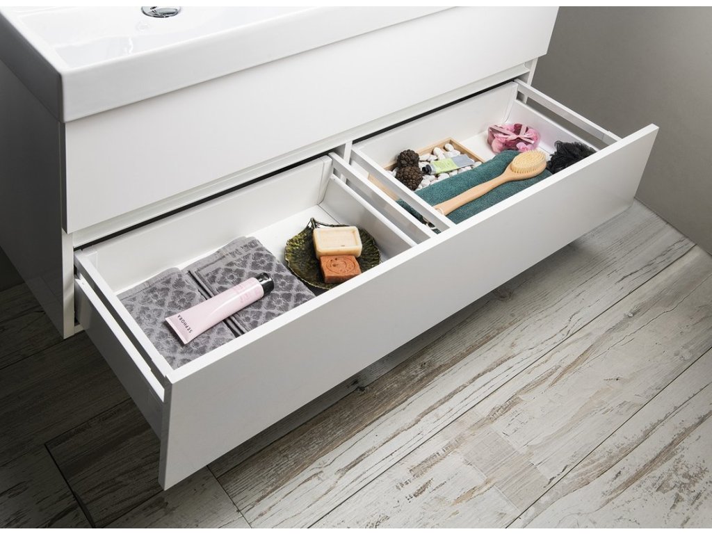 Nábytek je vybaven pojezdy zásuvek s pomalým dojezdem a systémem automatického dovření zásuvek. Již žádné hlučné dovírání.
