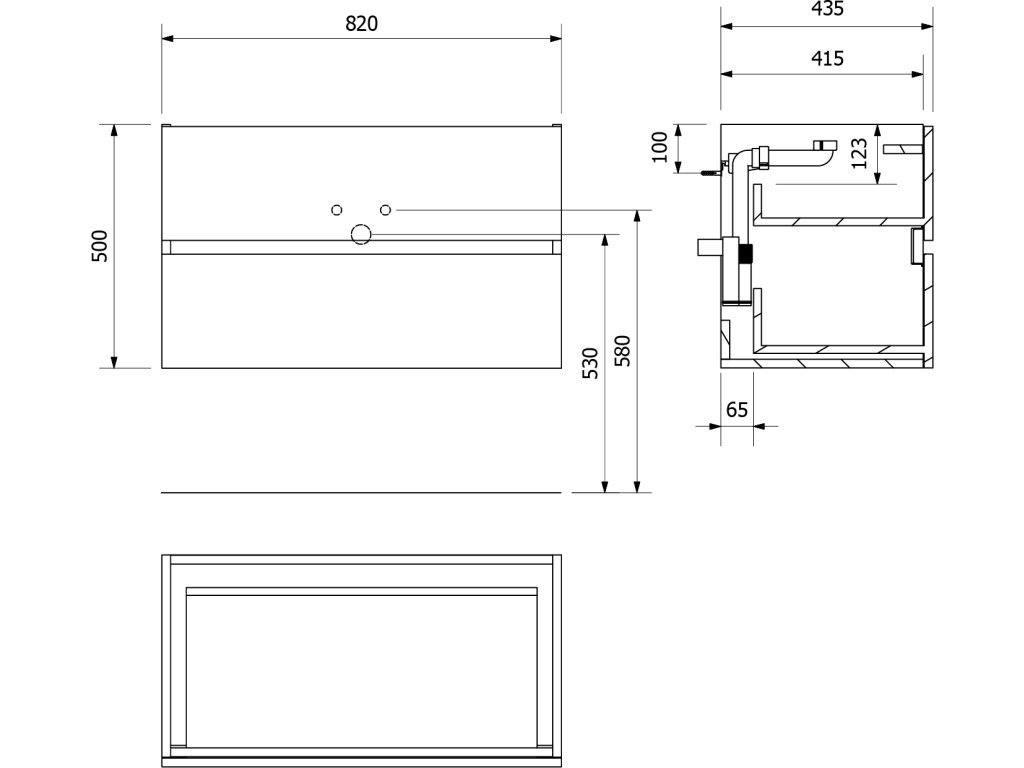- Při instalaci keramického umyvadla KARE je nutné použít distanční podložky (součástí balení skříňky) a sifon URBINO s Click Clack výpustí (k dokoupení).
