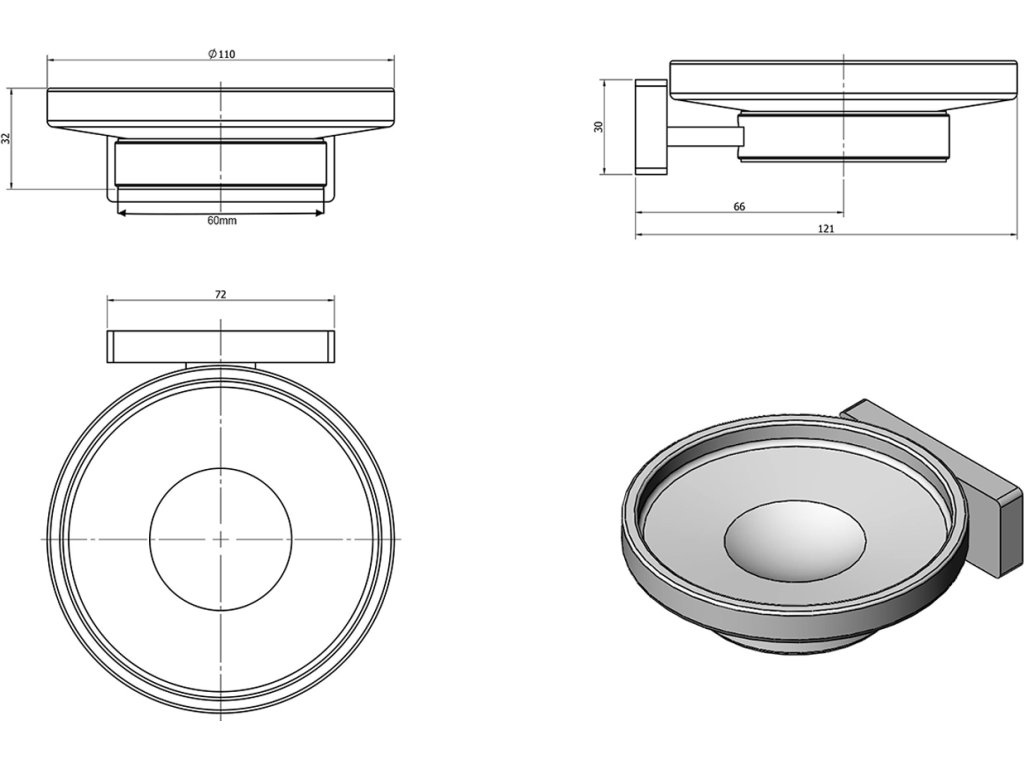 Sapho OLYMP mýdlenka keramická, mléčné sklo, chrom 1321-02