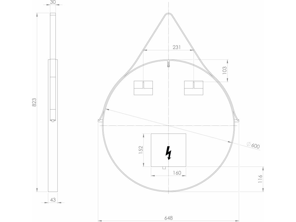 Sapho ORBITER kulaté zrcadlo s LED osvětlením ø 60cm, kožený pásek, černá mat ORL060