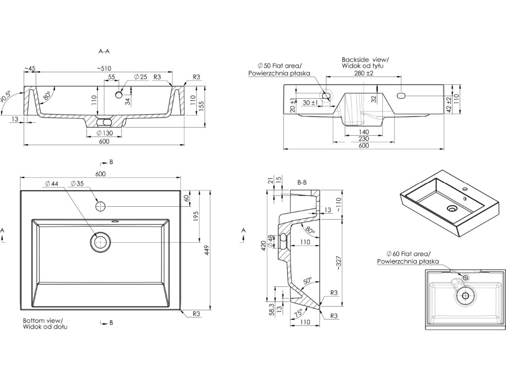 Sapho ORINOKO umyvadlo, litý mramor, 60x45cm, bílá OR060