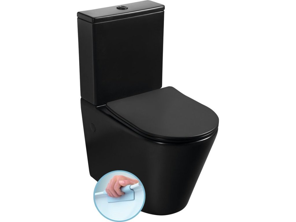 Sapho PACO WC kombi, Rimless, spodní/zadní odpad, černá mat PC1012WRB