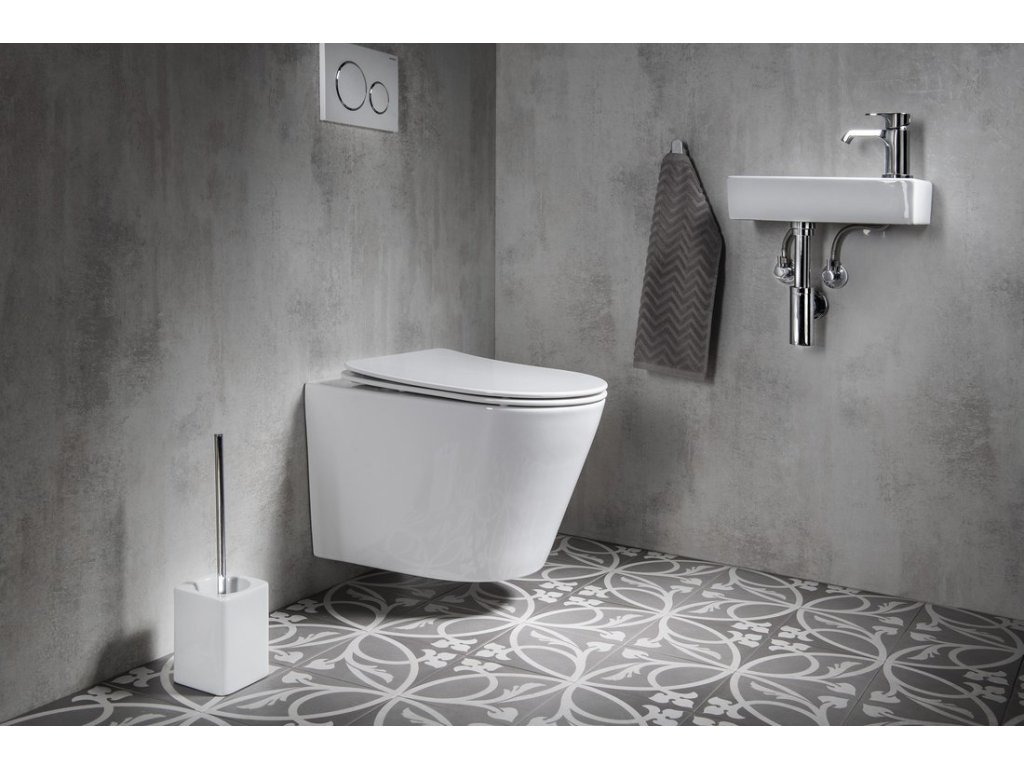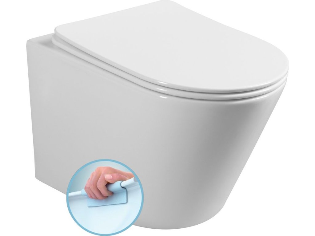Rimless (NoRim) – toalety bez tradičního oplachového kruhu. Hladký povrch bez dutin a záhybů. Oplachová voda vytéká rozdělovačem vody pouze ze zadní části WC mísy a díky speciálnímu tvaru keramiky dokonale opláchne vnitřní prostor. Výhodou je snadná údržba a čištění WC mísy.