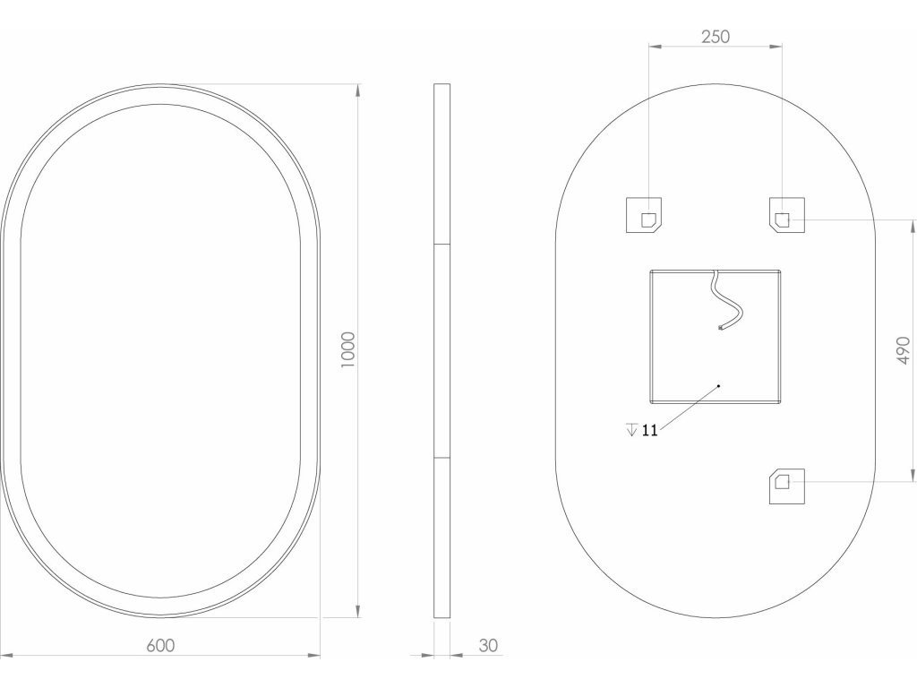 Sapho PARGA oválné zrcadlo s LED osvětlením 60x100cm PG600
